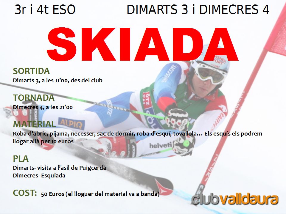 Els socis de Valladura i amics de tercer i quart d'ESO anirem a esquiar els dies 3 i 4 de gener de 2012.