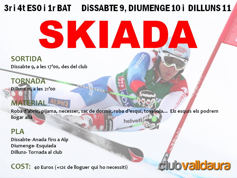 MATERIAL: Roba d’abric, pijama, necesser, sac de dormir, roba d’esquí, tovallola… Els esquís els podrem llogar allà